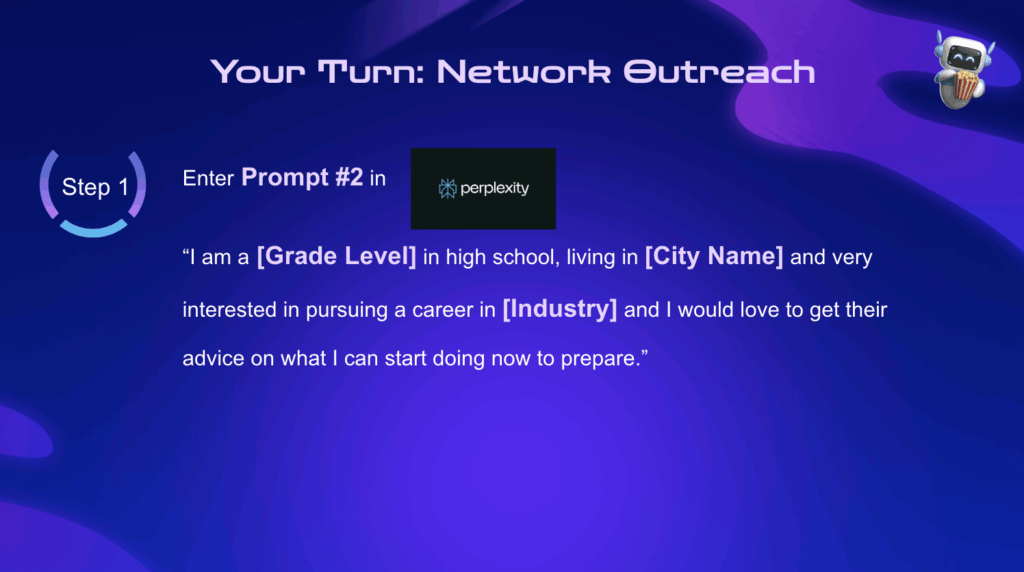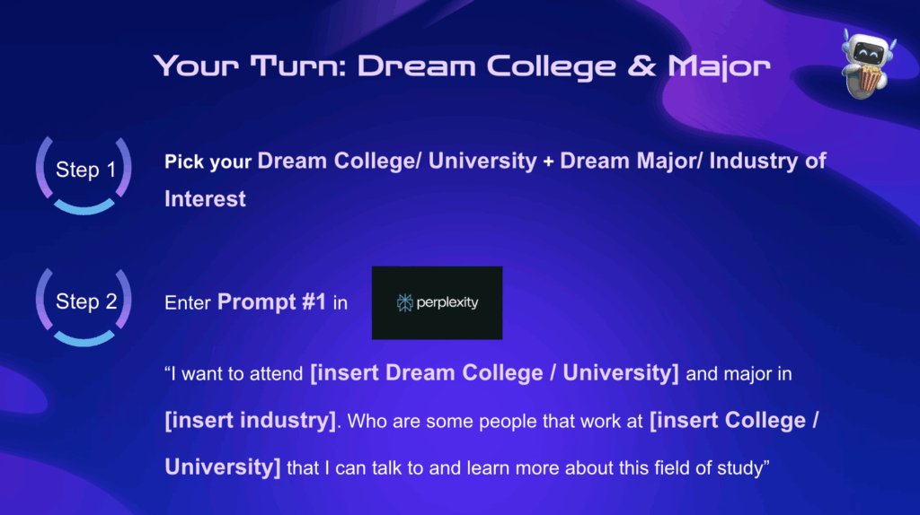 🧠 Use AI (like Perplexity.ai) to find people at colleges or in industries you love